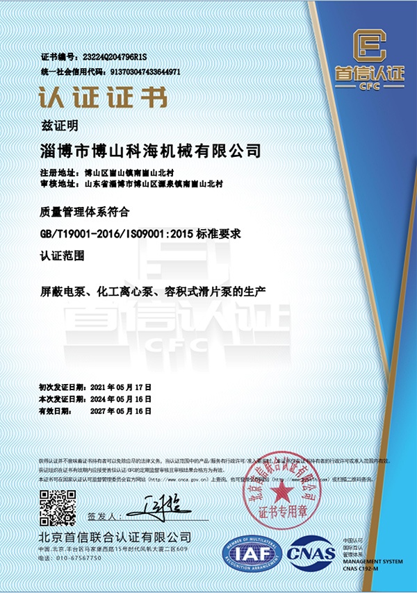 ISO9001質量認證體系認證·多年專注于耐酸泵化工泵生產制造